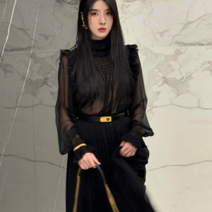 블랙 시스루 프릴 블라우스+0원